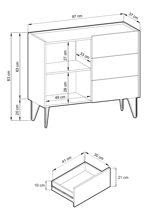 Wymiary komody Piaski HARMONY KSZ97: