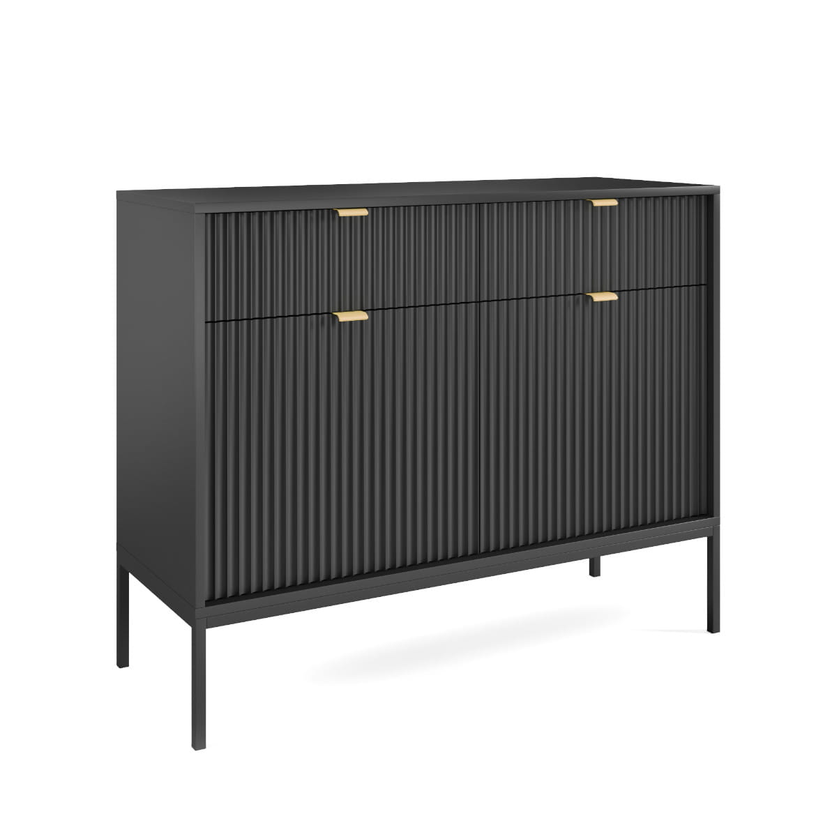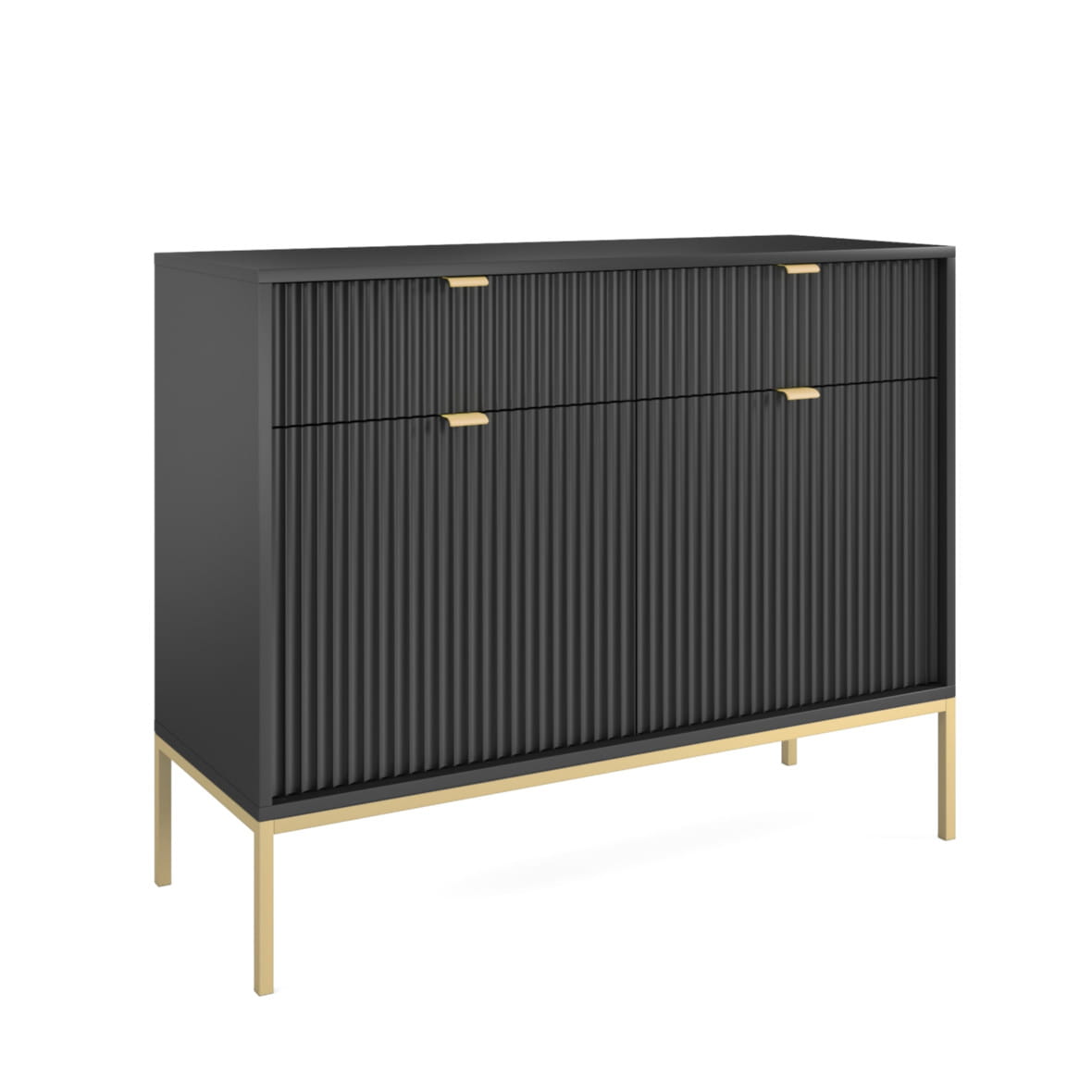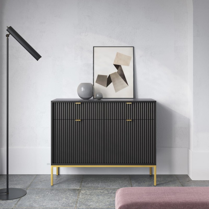 Komoda Piaski NOVA KSZ104 szer. 104 cm z ryflowaniami, kolor czarny, złote uchwyty