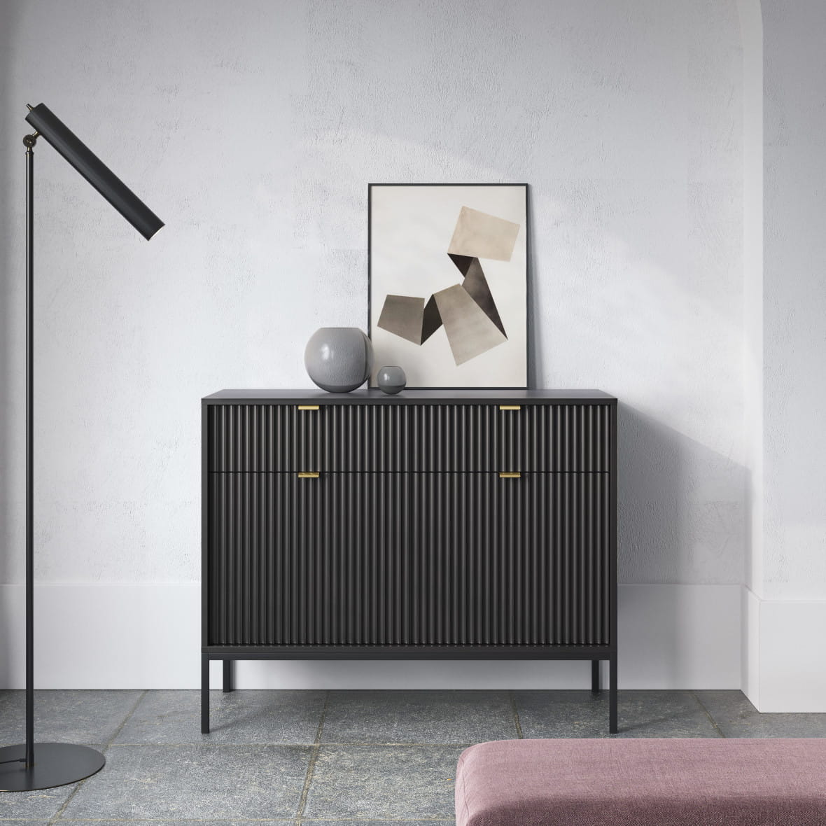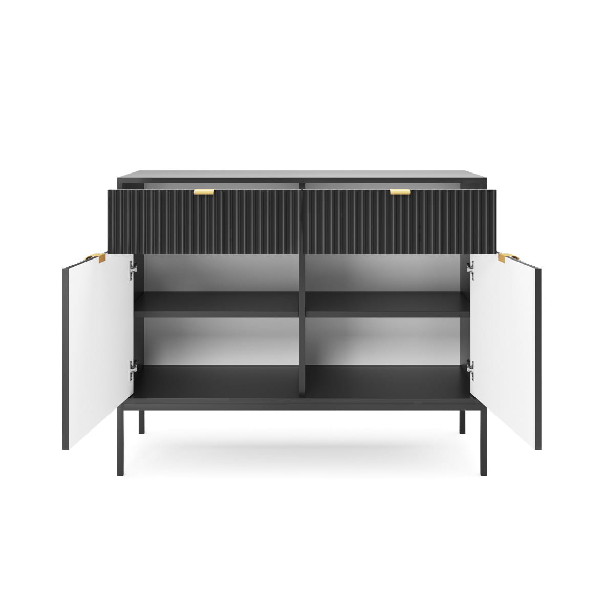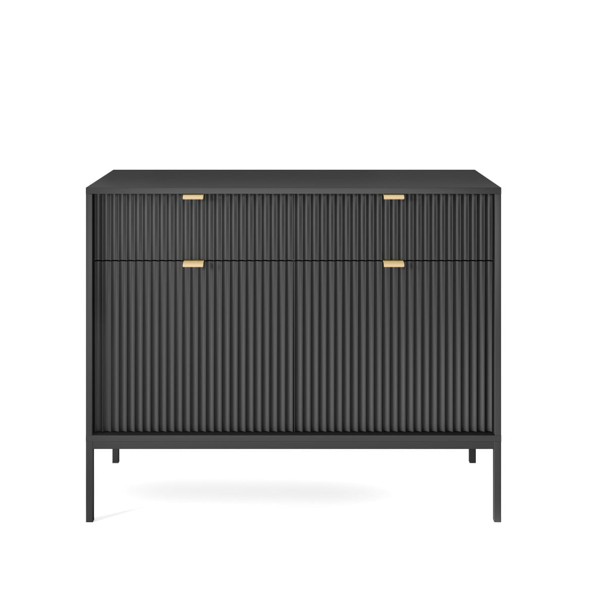 Komoda Piaski NOVA KSZ104 szer. 104 cm z ryflowaniami, kolor czarny, złote uchwyty
