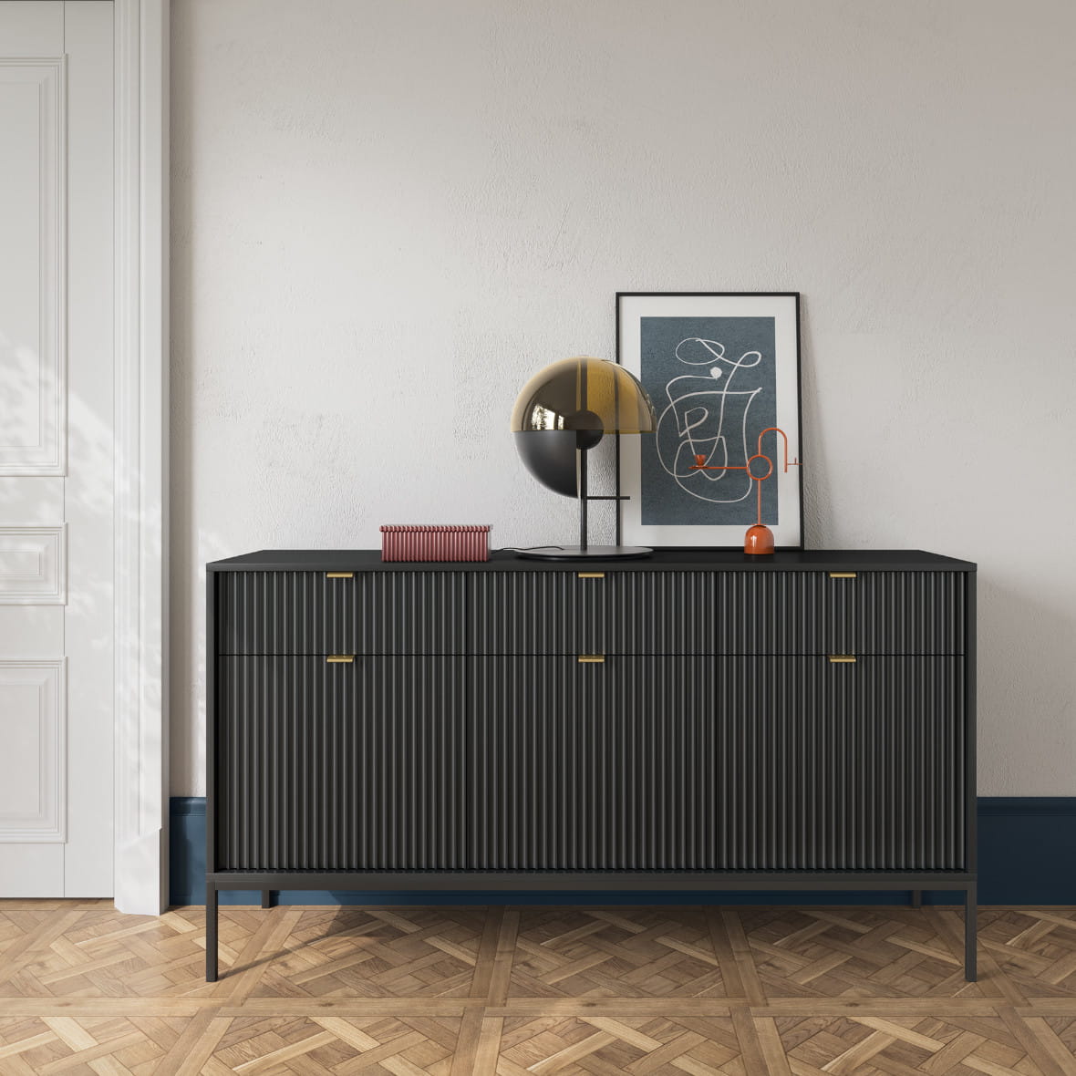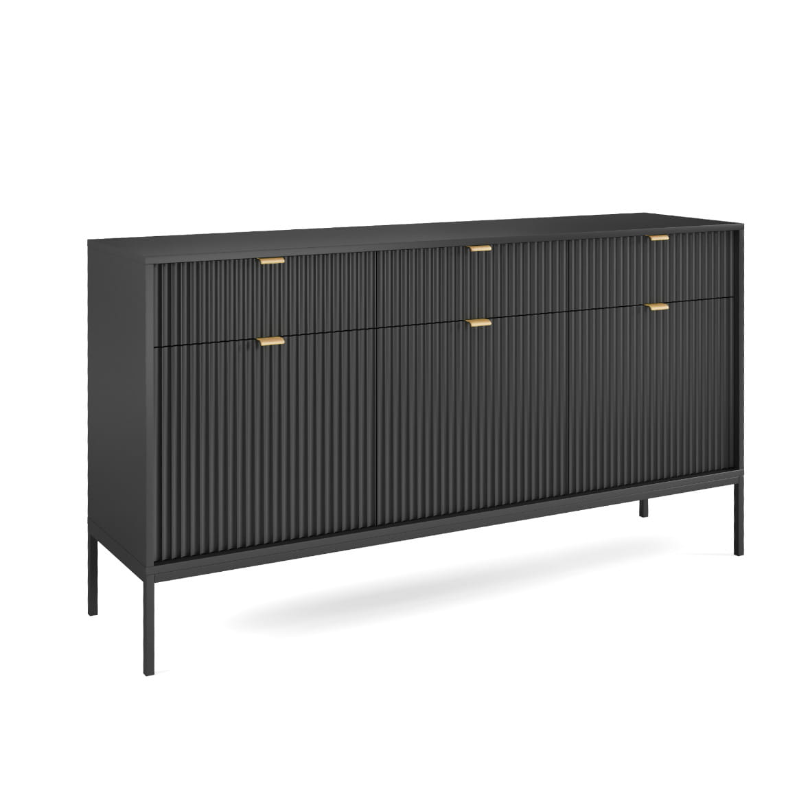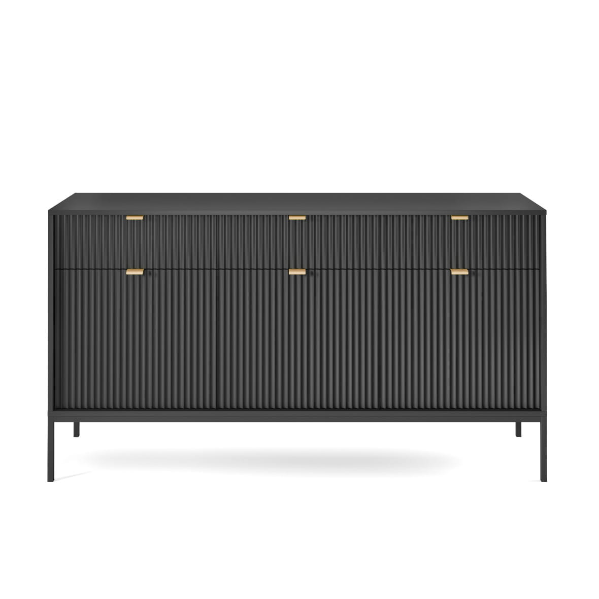 Komoda Piaski NOVA KSZ154 szer. 154 cm z ryflowaniami, kolor czarny, złote uchwyty