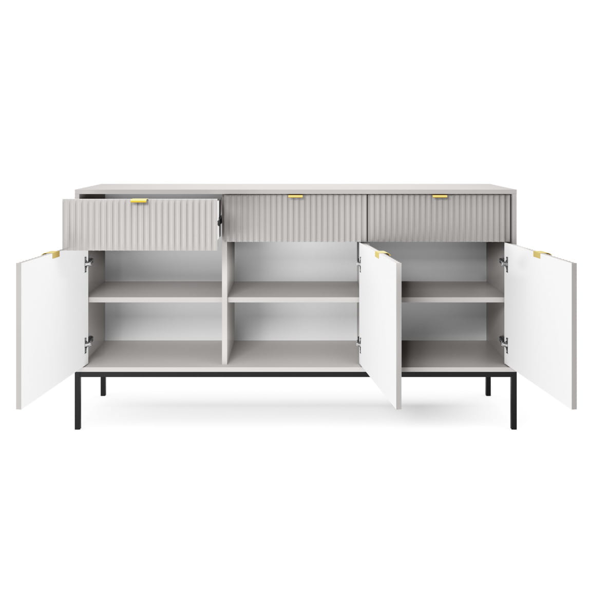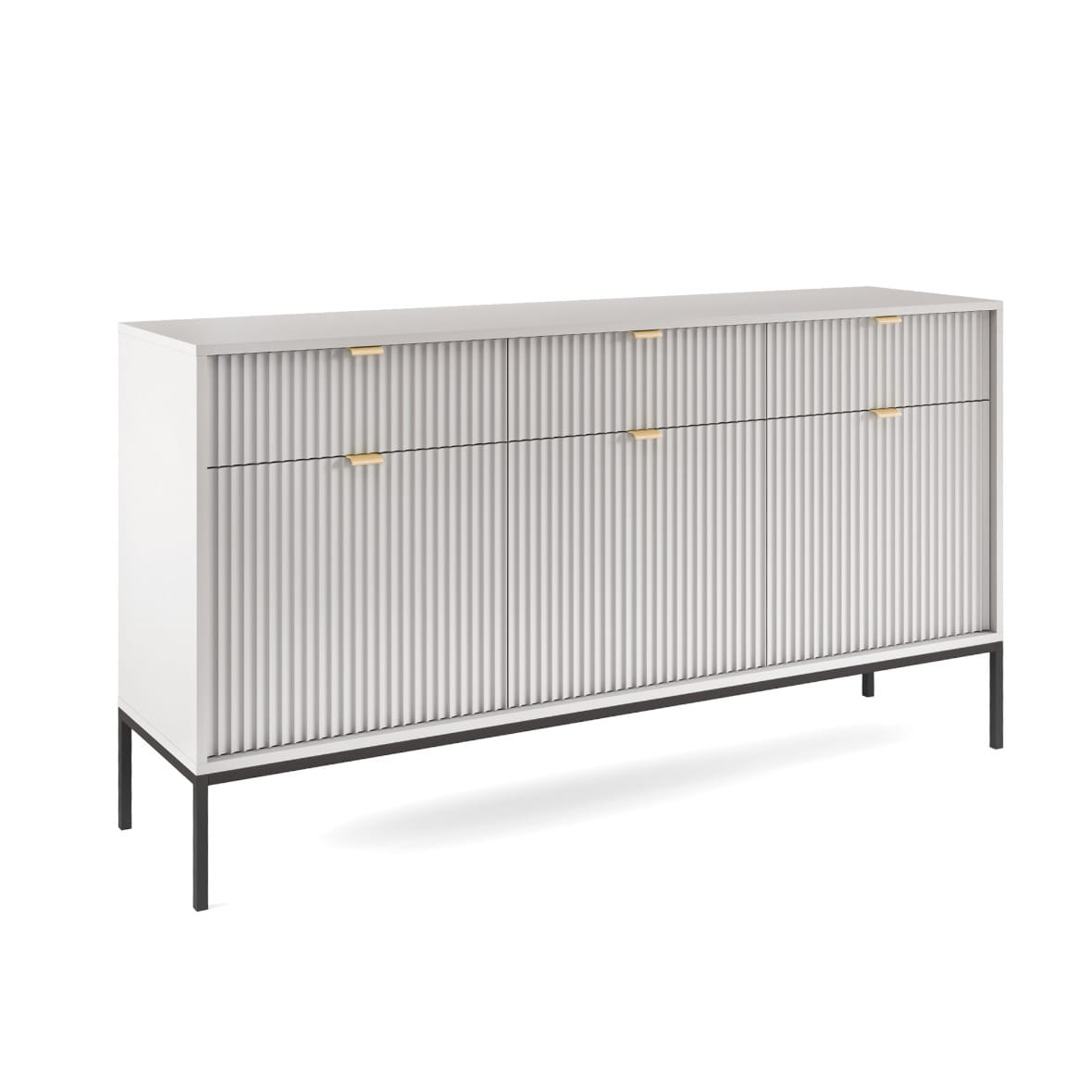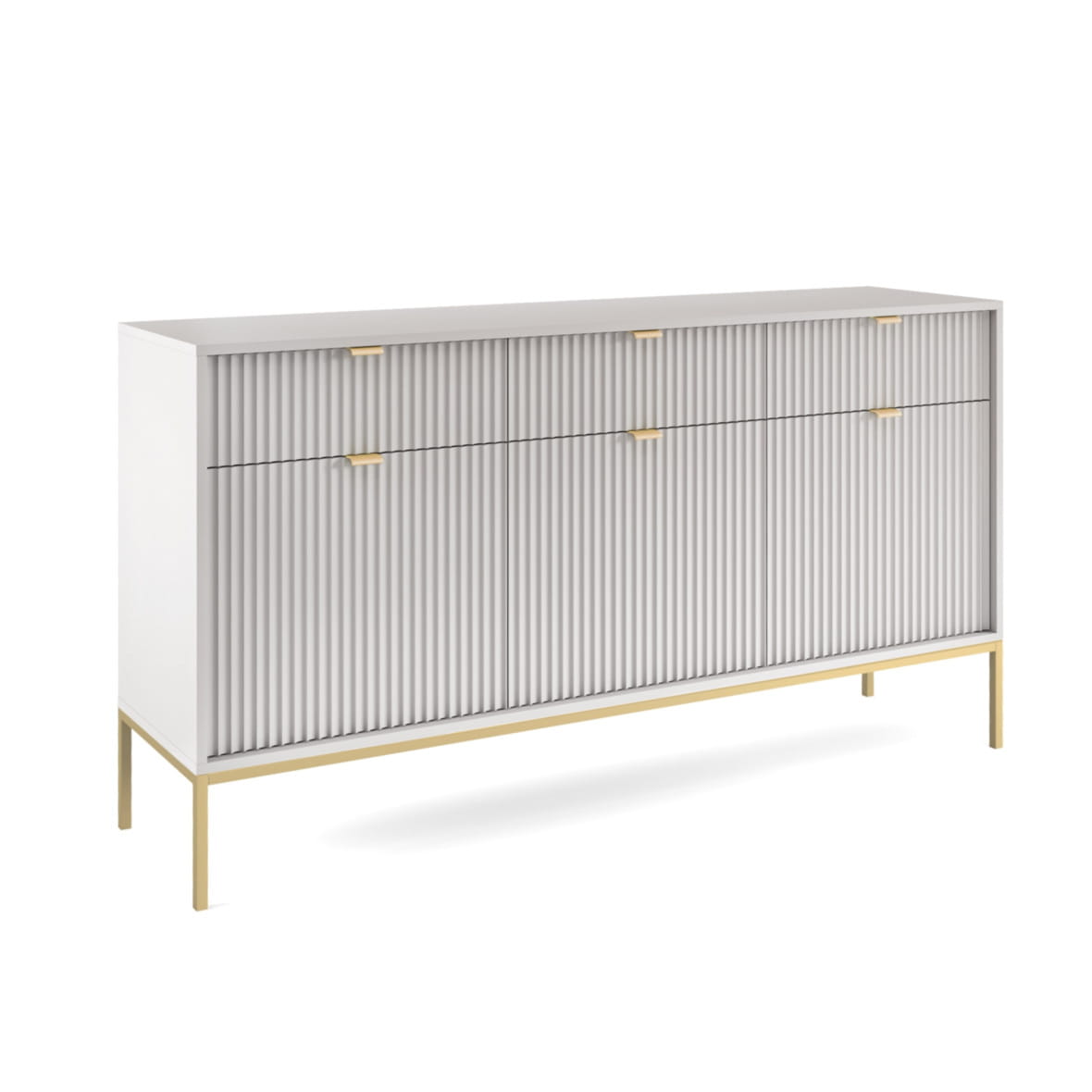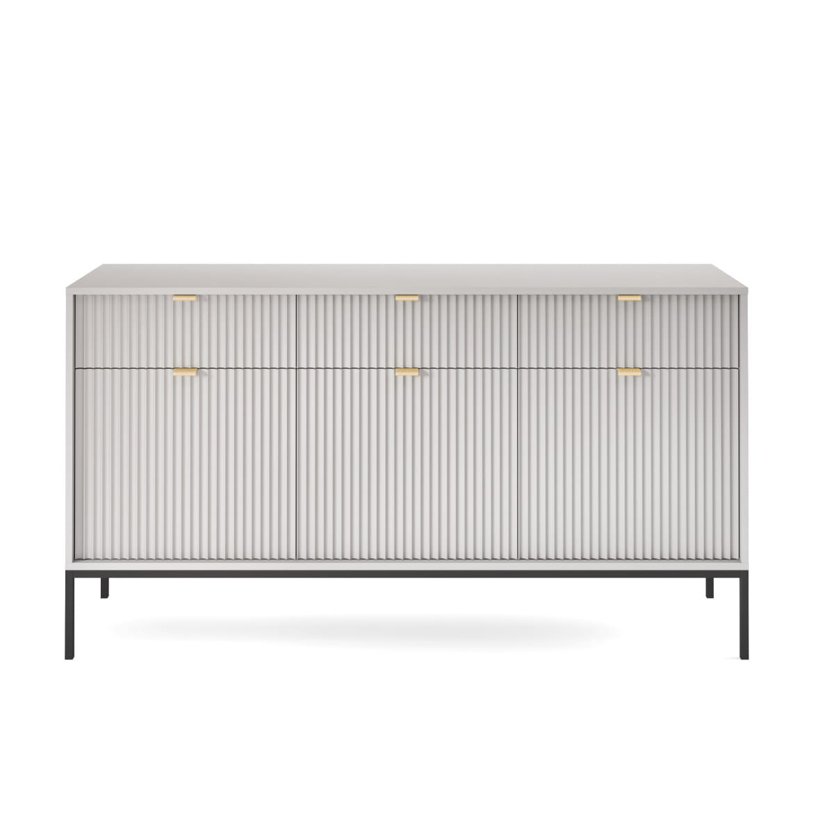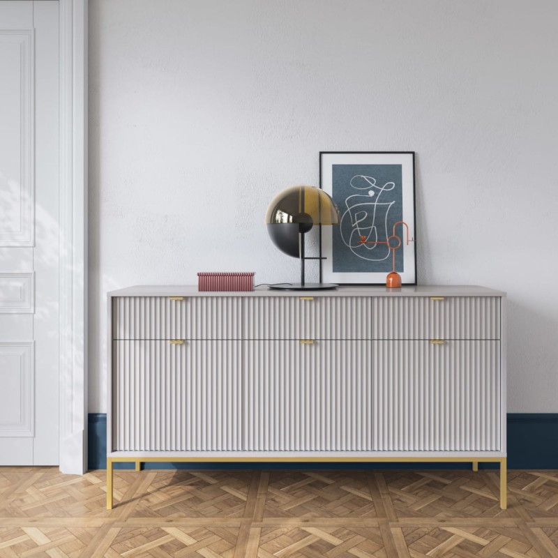 Komoda Piaski NOVA KSZ154 szer. 154 cm z ryflowaniami, kolor szary, złote uchwyty