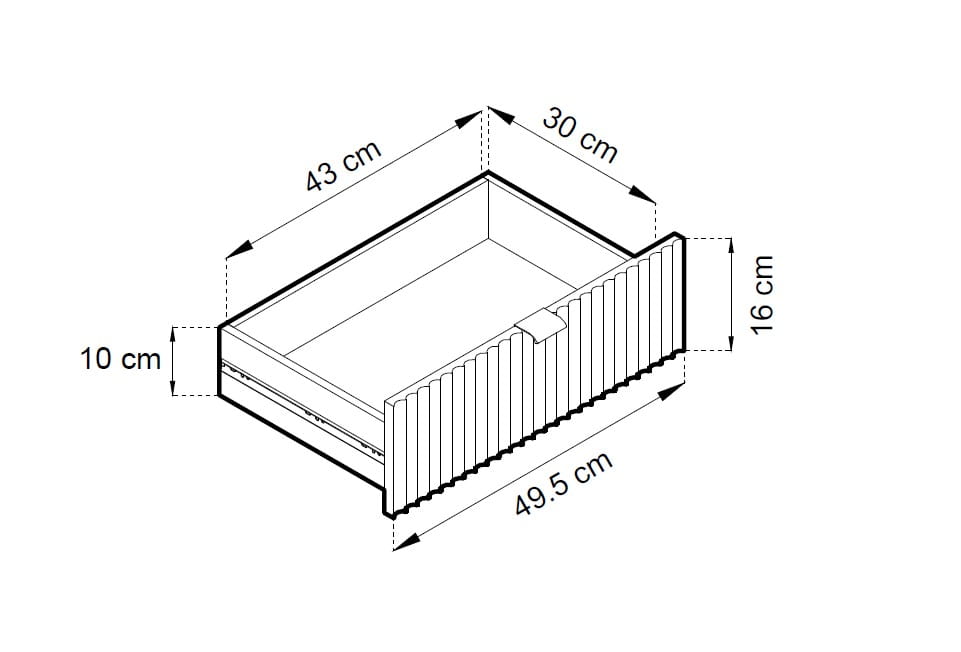 - Fronty wykonane z MDF 18 mm, ryflowane