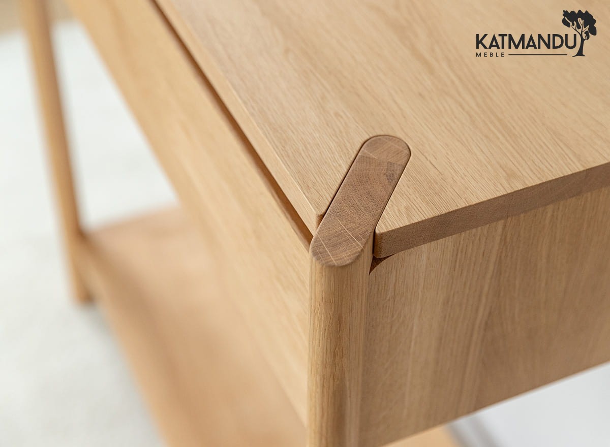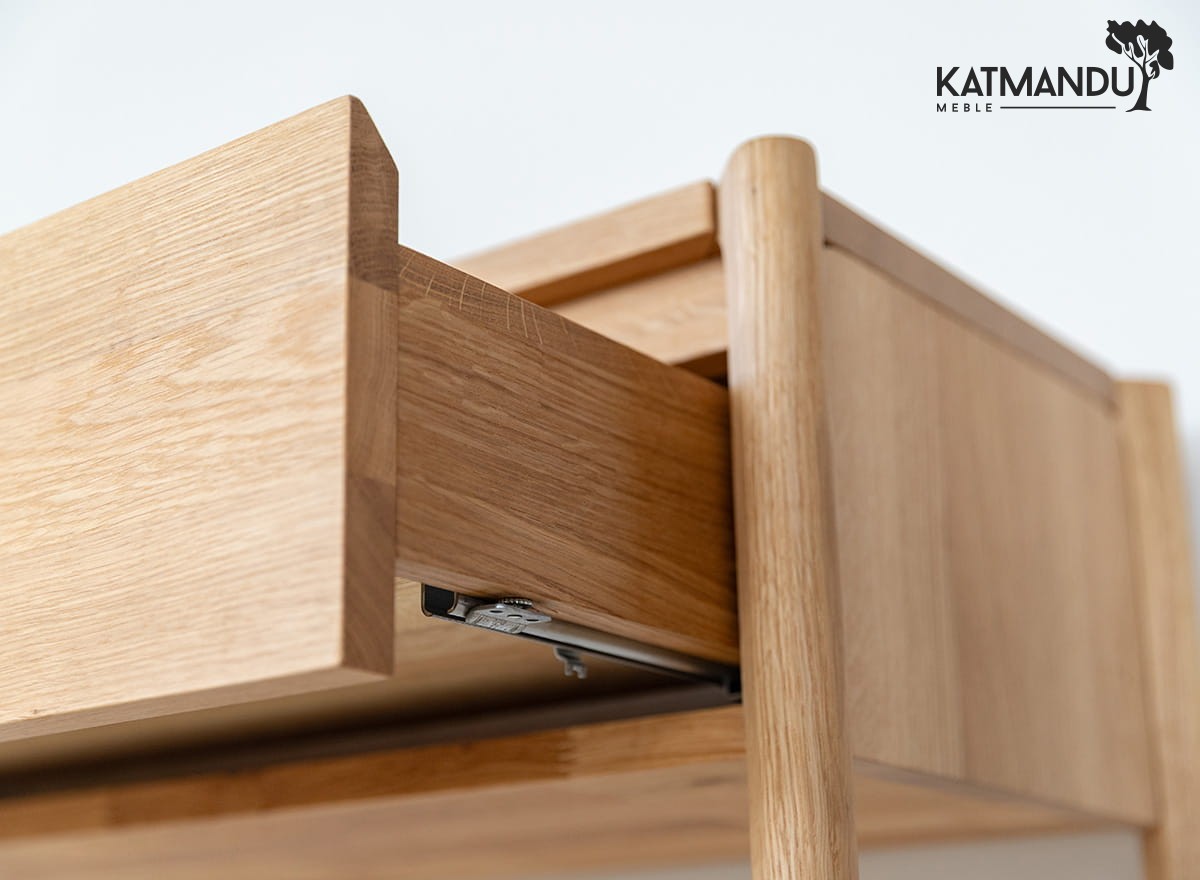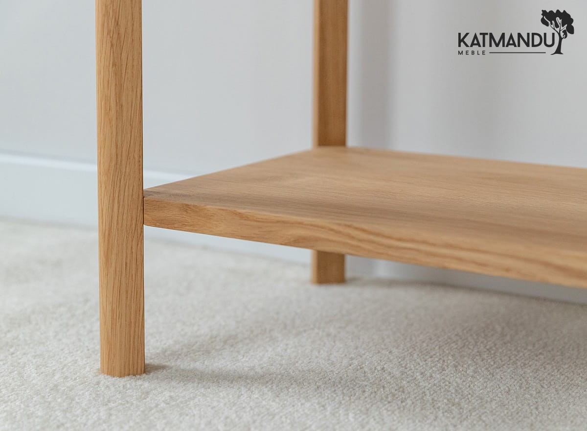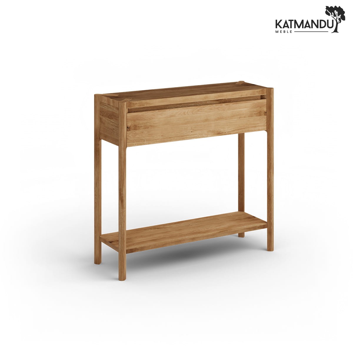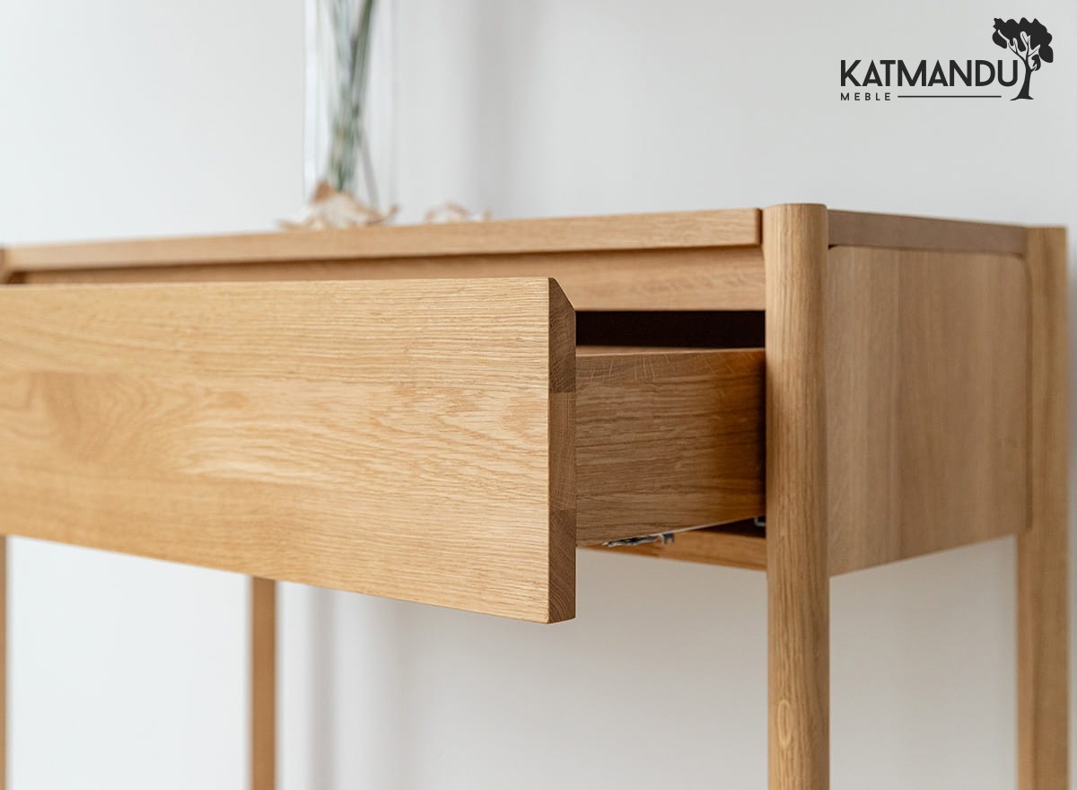 Konsola dębowa Katmandu CAMPI z szufladą – naturalne rzemiosło i minimalistyczna elegancja