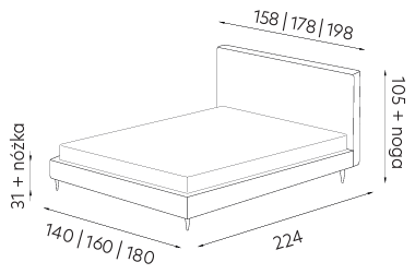 - Szerokość: 158 | 178 | 198 cm (na materac: 140 | 160 | 180 cm)