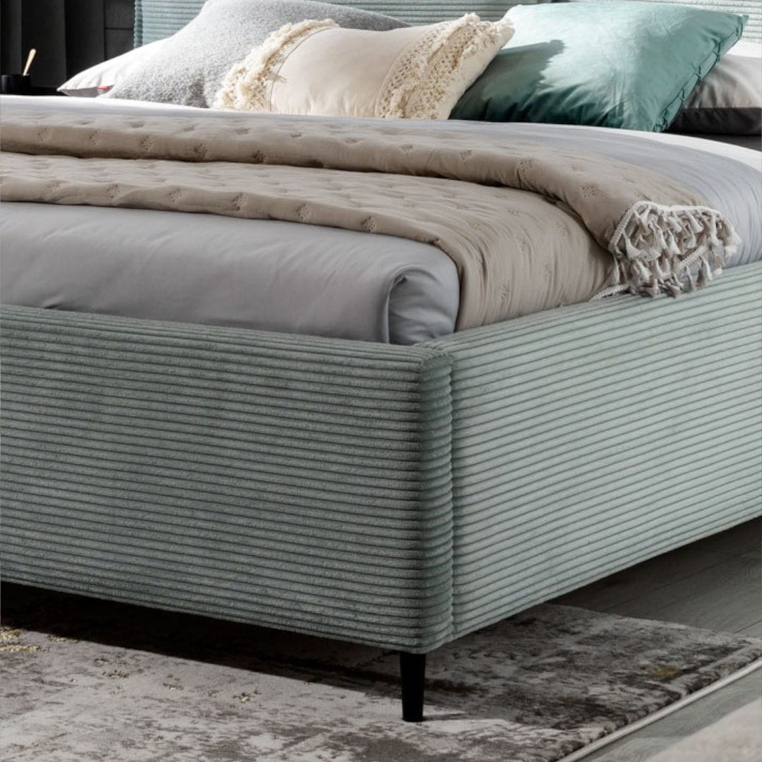 - Korpus łóżka wykonany z laminowanej płyty wiórowej (ok. 44mm), warstwy pianki oraz wybranej tkaniny.