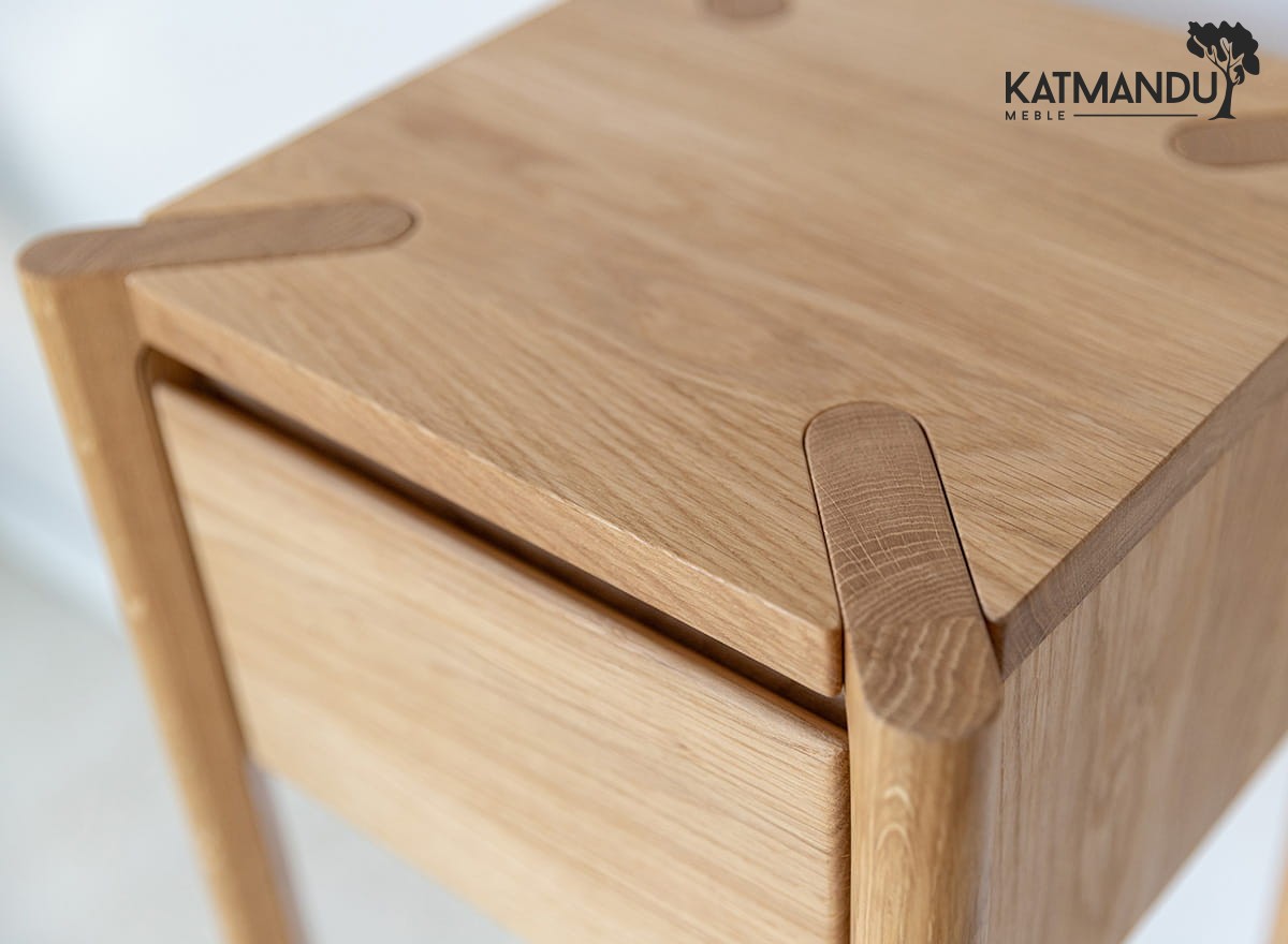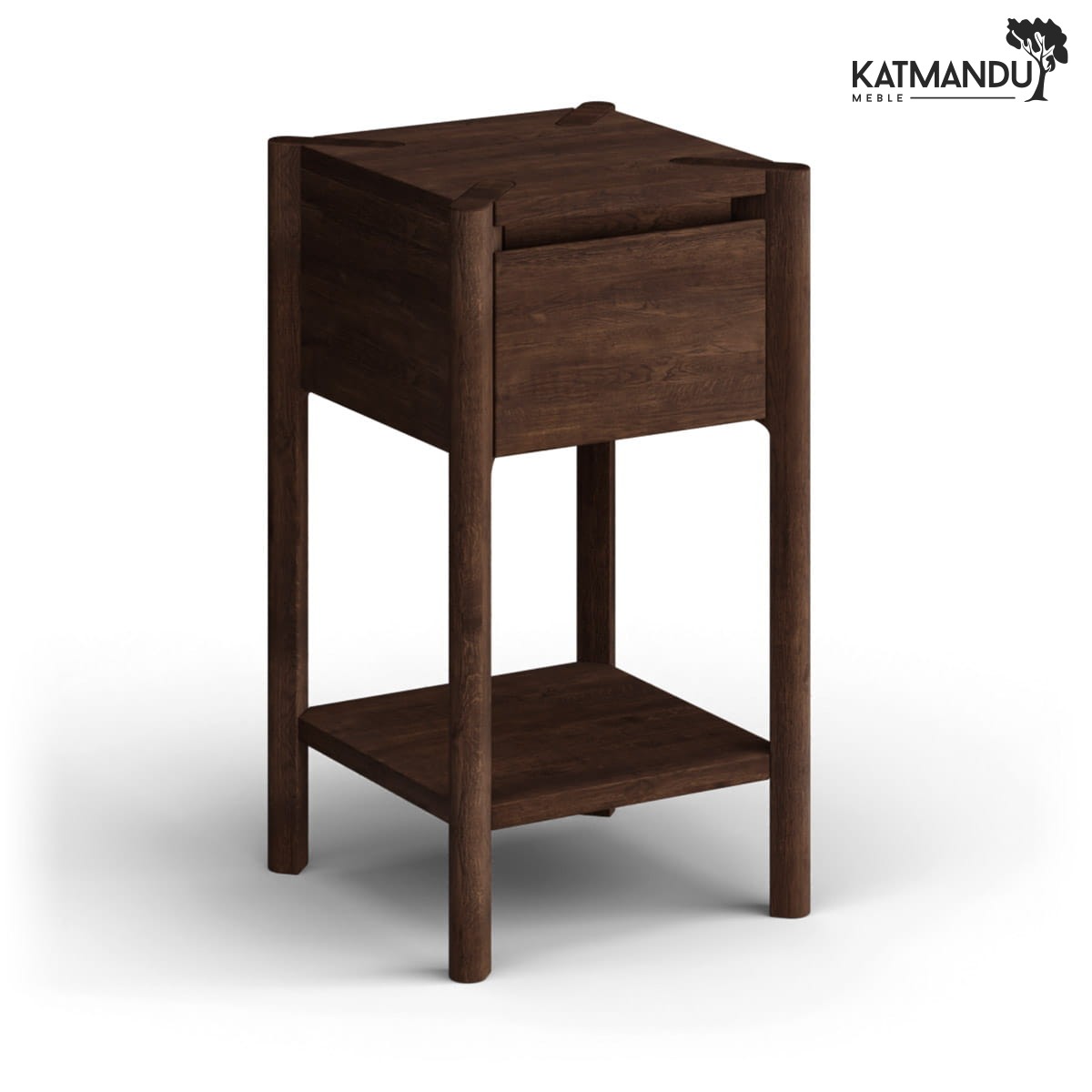 Stolik niski z szufladą dębowy Katmandu CAMPI w kolorze dąb tabacco – mały format, duża funkcjonalność, naturalna elegancja