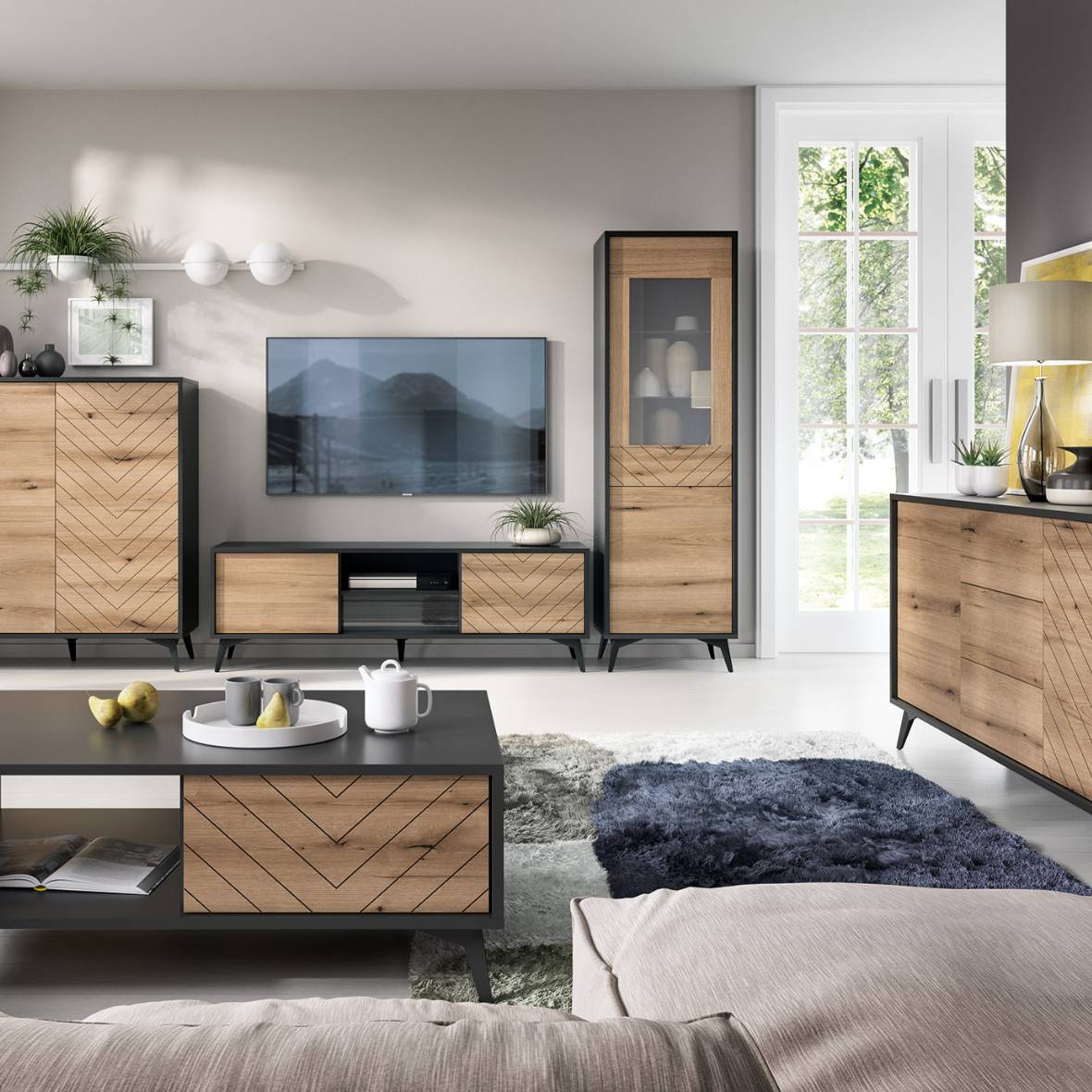 Witryna Piaski DIAMOND W54 Dąb Evoke / Czarny
